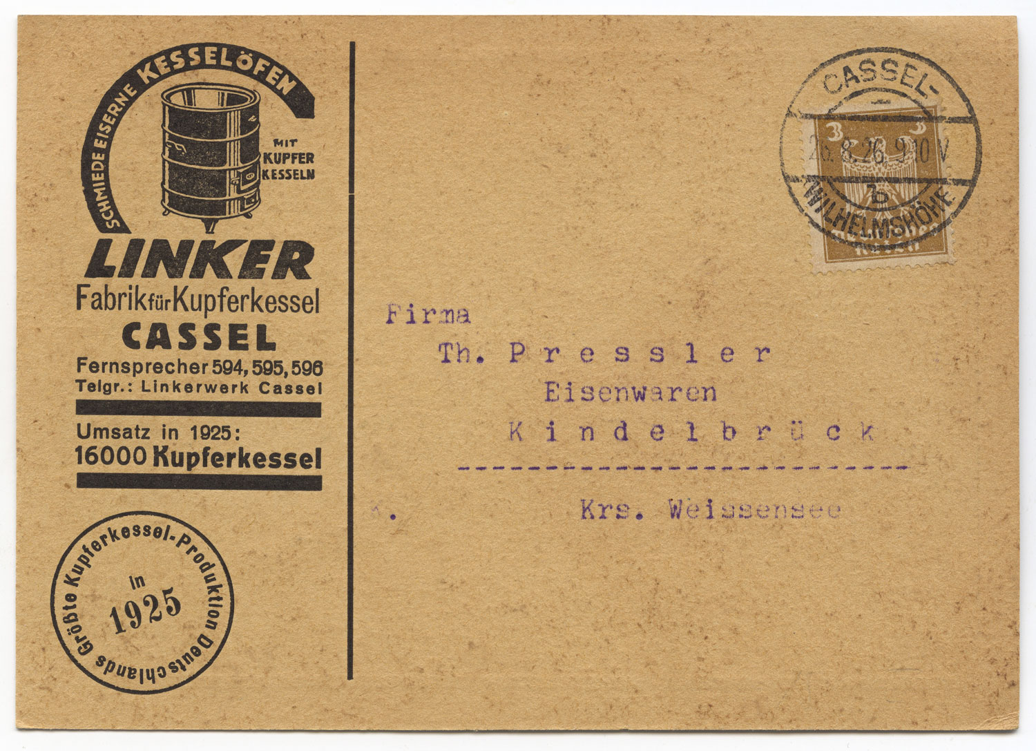 »Cassel Wahlershausen 1912«. – Das Haus scheint nicht mehr zu bestehen.*MA