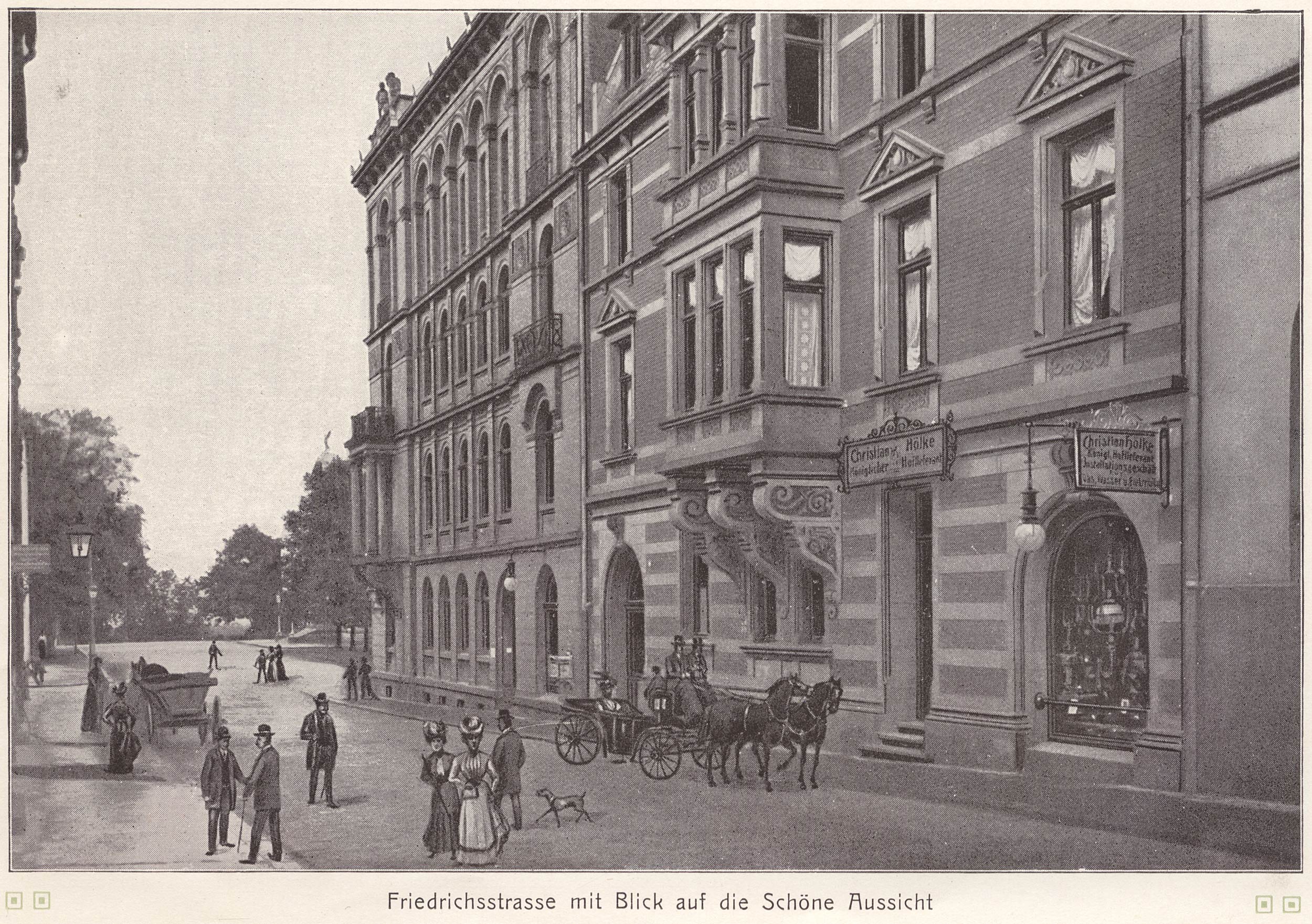 [380] Ehe ich es bei diesen Erinnerungsbildern genügen lasse, mit denen ich nur Schilderungen aus meinen früheren Jahren zu bringen beabsichtigt habe, will ich noch kurz darüber berichten, wie es kam, daß ich mich in Wilhelmshöhe ansiedelte, und welcher Umstand mir hierzu verhalf! Bei Gelegenheit einer zufälligen Begegnung im Herbst 1880 mit Dr. Renner, dem Rechtsbeistand und Vermögensverwalter der Fürstin von Hanau, erkundigte ich mich, ob das Palais der Fürstin an der Königsstraße, das er zu verkaufen hatte, verkauft sei. Ich hatte ein Interesse daran, mich über den Verkauf dieses Besitztums zu informieren, weil ich für einen Reflektanten, der angab, dieses Palais an Hand gekauft zu haben, ein Projekt zum Umbau desselben gemacht hatte, dessen Ausführung mir übertragen werden sollte. Mein Auftraggeber aber hatte sich, nachdem ich das Projekt längst fertig gestellt hatte, nicht mehr bei mir sehen lassen, und so benutze ich das gelegentliche Zusammentreffen mit Dr.R., um nach dem Stand der Sache zu fragen. R. teilte mir mit, daß der Kauf gar nicht zustande gekommen sei; das Angebot wäre so erheblich unter der gestellten, schon sehr mäßigen Forderung, die er mir nannte, geblieben, daß er die Verhandlungen abgebrochen hätte. Ich entgegnete, daß mein Auftraggeber mir eine viel höhere Ankaufssumme genannt habe; das sei Schwindel gewesen, meinte R., zu dem mir von ihm genannten Preise könne ich das Palais jederzeit haben, wenn ich näheres erfahren wolle, solle ich bei ihm vorkommen. Die Sache ging mir durch den Kopf; ich selbst hatte den Wert des kostbaren Besitztums, das ich durch eine genaue Besichtigung näher kennen gelernt hatte, viel höher taxiert. Ich trug mich mit dem Gedanken, den Kaufmännischen Verein, der damals ein eigenes Lokal suchte, für den Ankauf zu interessieren und mir den Umbau zu sichern. Mit einigen Mitgliedern des genannten Vereins traf ich im Hotel Royal zusammen und besprach diese Angelegenheit mit ihnen, fand auch sehr viel Meinung dafür. Einer derselben – es war einer [381] meiner Bauherren – Adolf Gotthelft – rief mich aber zur Seite und riet mir, doch unbesorgt das Geschäft allein zu machen, es würde mir nicht schwer fallen – und ich folgte seinem Rate. Andern Tags ging ich mit dieser Absicht zu Dr. R., der sich freute, daß ich dem Ankauf näher treten wollte. Er stellte die Bedingungen so günstig für mich, daß mir der Kauf ermöglicht wurde, und so wurde ich ganz unverhofft Besitzer des Hanauischen Palais, das jahrelang vergeblich feilgehalten war. In welcher Weise ich das Palais umgebaut habe, ist bekannt. Es war mir dabei besonders darum zu tun, dem längst gefühlten Bedürfnis nach einem vornehmen Restaurant Rechnung zu tragen, und so entstand das Palais-Restaurant, das längere Jahre hindurch unter Leitung meines Schwagers Carl Meyer die erste Stelle unter den hiesigen derartigen Etablissements einnahm. Hierzu kamen die fünf Läden und herrschaftliche Wohnungen, so daß mir das neue Besitztum eine gute Rente sicherte – ich kam in die Lage, wieder etwas Neues unternehmen zu können. |