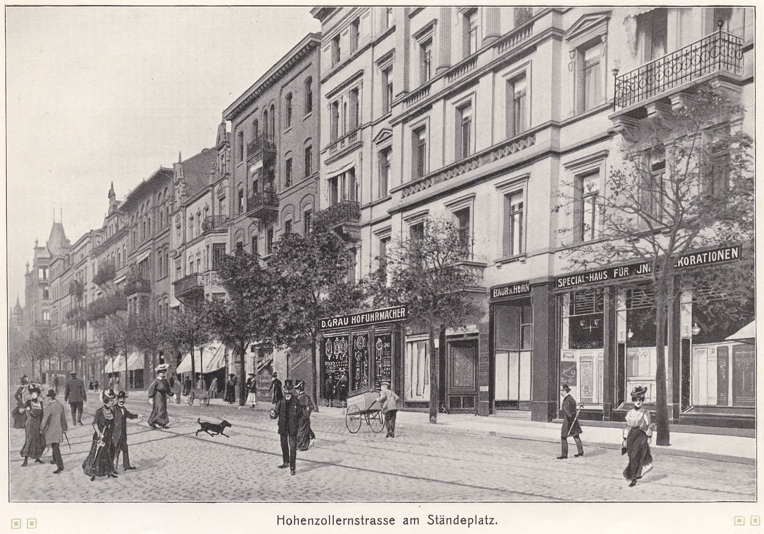 Am 4. März 1878 wurde unser Sohn Karl geboren; wir wohnten noch in der oberen Sophienstraße, zogen aber bald darauf wieder in mein Haus in der Bismarckstraße 2, das ich durch einen Anbau an der Hohenzollernstraße vergrößert hatte. Am 16. Oktober des folgenden Jahres erblickte dort unser Fritz das Licht der Welt. – – – Im Laufe der siebziger Jahre wurden die ersten großen Staatsbauten unter dem preußischen Regime ausgeführt, [375] u.a. das Postgebäude am Königsplatz, das Justiz- und Regierungsgebäude, die Reichsbank, die Kunstgewerbeschule usw. Die Stadt Cassel machte schon vorher den Anfang mit ihren stattlichen Schulgebäuden, dem Realgymnasium an der Schomburgstraße und der höheren Töchterschule am Ständeplatz. Die Privatbautätigkeit entwickelte sich mächtig; auch ich habe eine erhebliche Anzahl Privathäuser nach eigenen Entwürfen ausgeführt; damals war es noch nicht wie heute allseitig Gebrauch, die technische Leitung von der praktischen Ausführung zu trennen; beides blieb meist in einer Hand. Zu den Privatbauten, die mir übertragen wurden, hatte ich auch stets als Architekt die Entwürfe zu liefern. Außerdem baute ich für alleinige Rechnung wie auch in Gemeinschaft mit meinem alten Freunde Eduard Habich die Häuser an der Hohenzollern- und Kronprinzenstraße, ferner mit Ernst Scheldt die Villen an der von uns angelegten Nahlstraße usw. Eine wesentliche Änderung im inneren Stadtgebiet trat ein durch die Verlegung der alten Infanteriekaserne nach dem damals noch weit außerhalb der Stadt liegenden Aschrottschen Gelände an der verlängerten Hohenzollernstraße. Die Frankfurter Baubank war für dies Geschäft gewonnen worden; sie erbaute die neue Infanteriekaserne und erhielt als Gegenwert das gesamte Territorium der alten Kaserne, das in die Bauquartiere an der unteren Königsstraße umgestaltet wurde. Mein Vetter Hochapfel wurde als Vertreter der Frankfurter Baubank mit der Leitung dieses Geschäftes betraut. |