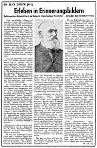 | Wolfgang Hermsdorff: »Erleben in Erinnerungsbildern«: HNA-»Blick zurück« Nummer 441 zu Heinrich Schmidtmann, 24. April 1971 | |