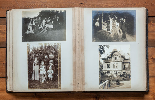 16 Links oben: Blick aus dem Schmidtmannschen Sommerhaus, Wigandstraße 4, nach Süden. Rechts hinten die Kuranstalt Dr. Greger, Burgfeldstraße 17. Links unten: Wigandstraße 4 von Süden. Rechts oben: Wigandstraße 4, Ostseite, also Straßenseite. Rechts unten: Familienbild. Hier klicken, um zu den Einzelfoto-Scans dieser Doppelseite zu springen. |